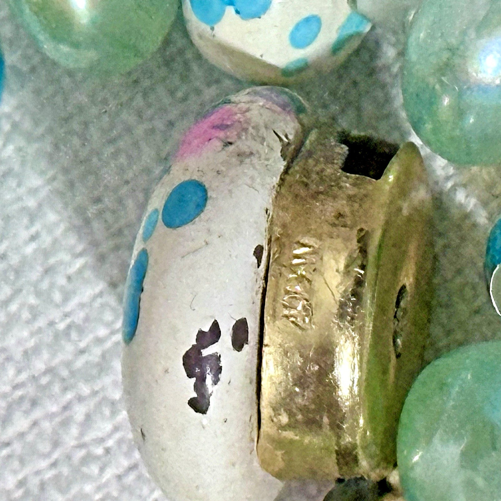 This stunning vintage necklace features two strands of vibrant turquoise blue beads that create an instant style statement. The eye-catching color and classic double-strand design add a perfect pop of retro charm to any outfit!