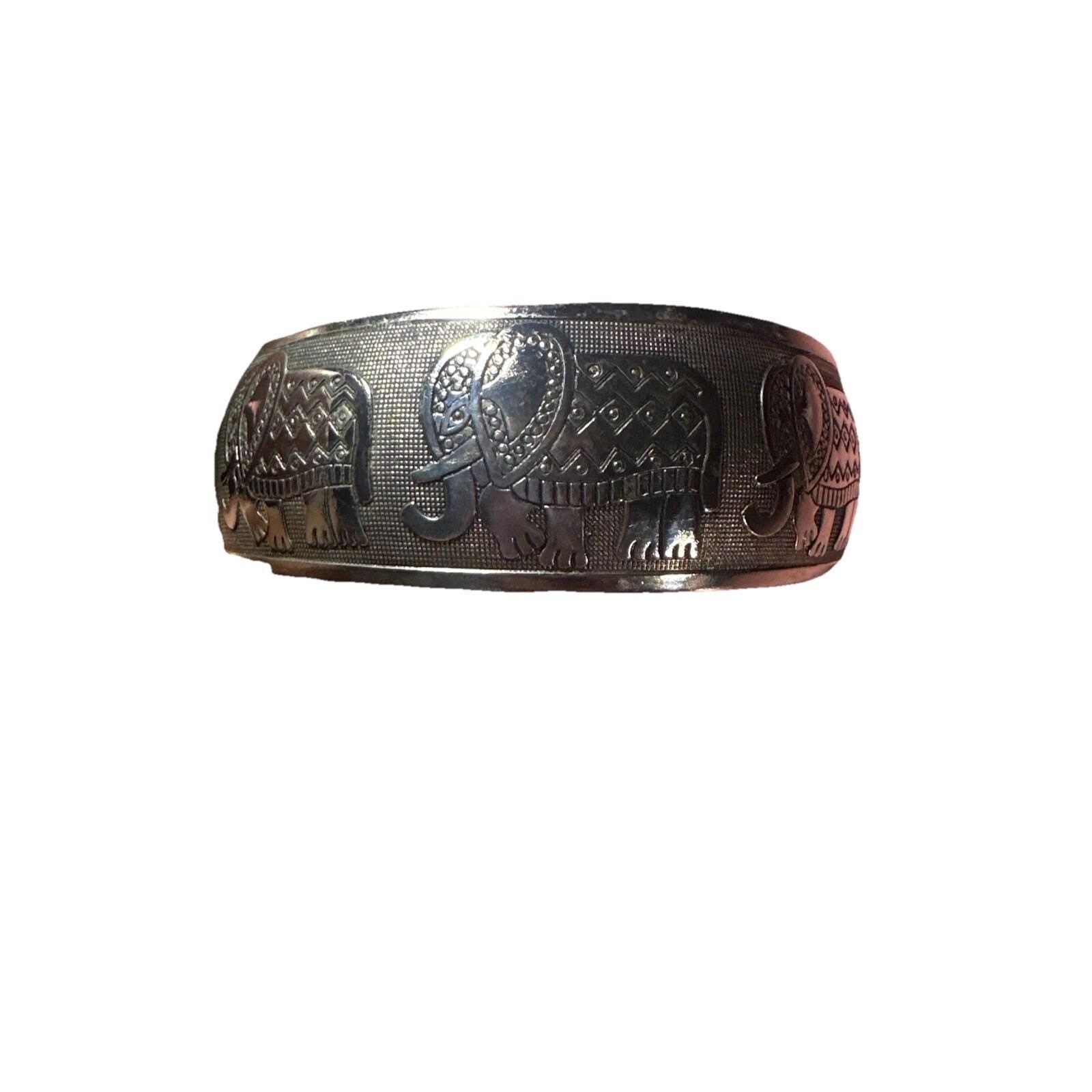 This Tibetan silver bangle features a detailed elephant carving, blending boho style with cultural charm. Its cuff design makes it easy to wear and a meaningful gift for any jewelry lover.