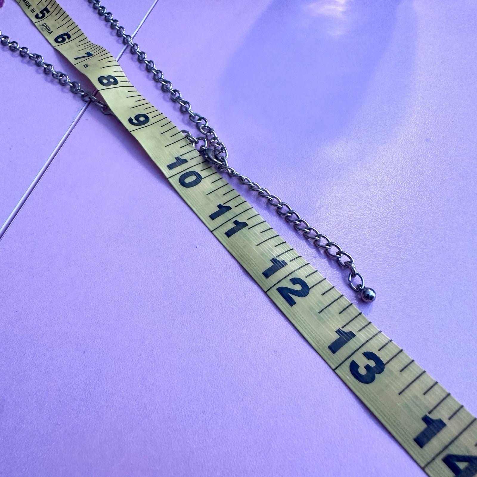 This necklace features vibrant fuschia enamel square links accented with gold-tone chains and sparkling rhinestones, adding a bold and stylish touch to any outfit.