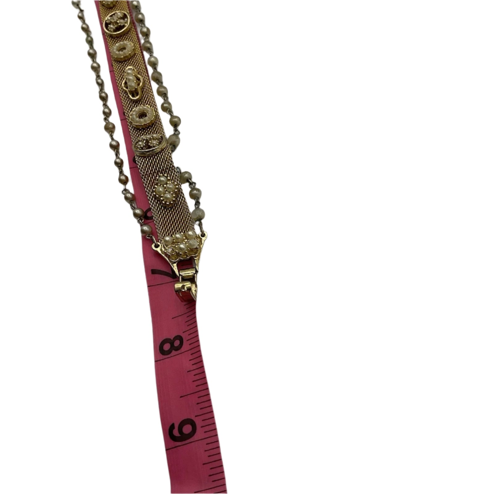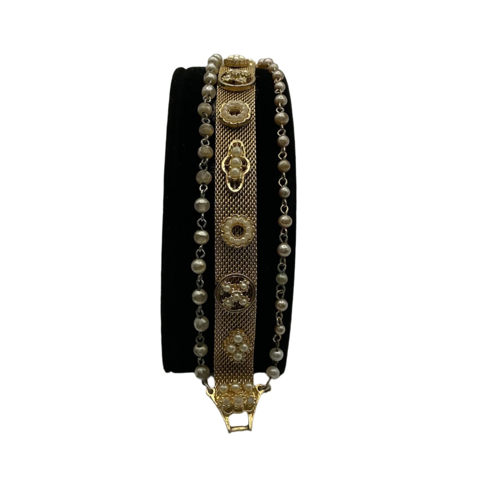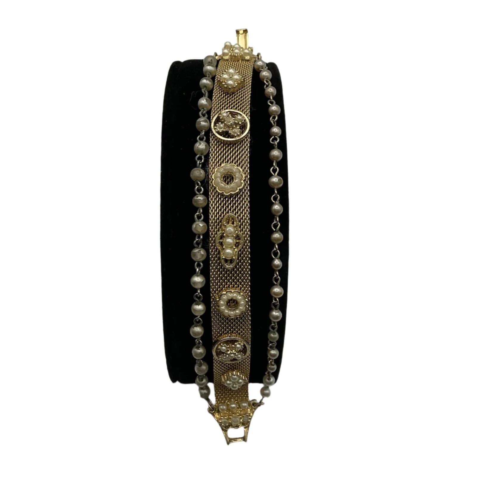 Vintage 3 Strand Mesh Seed Pearls Gold Tone Bracelet