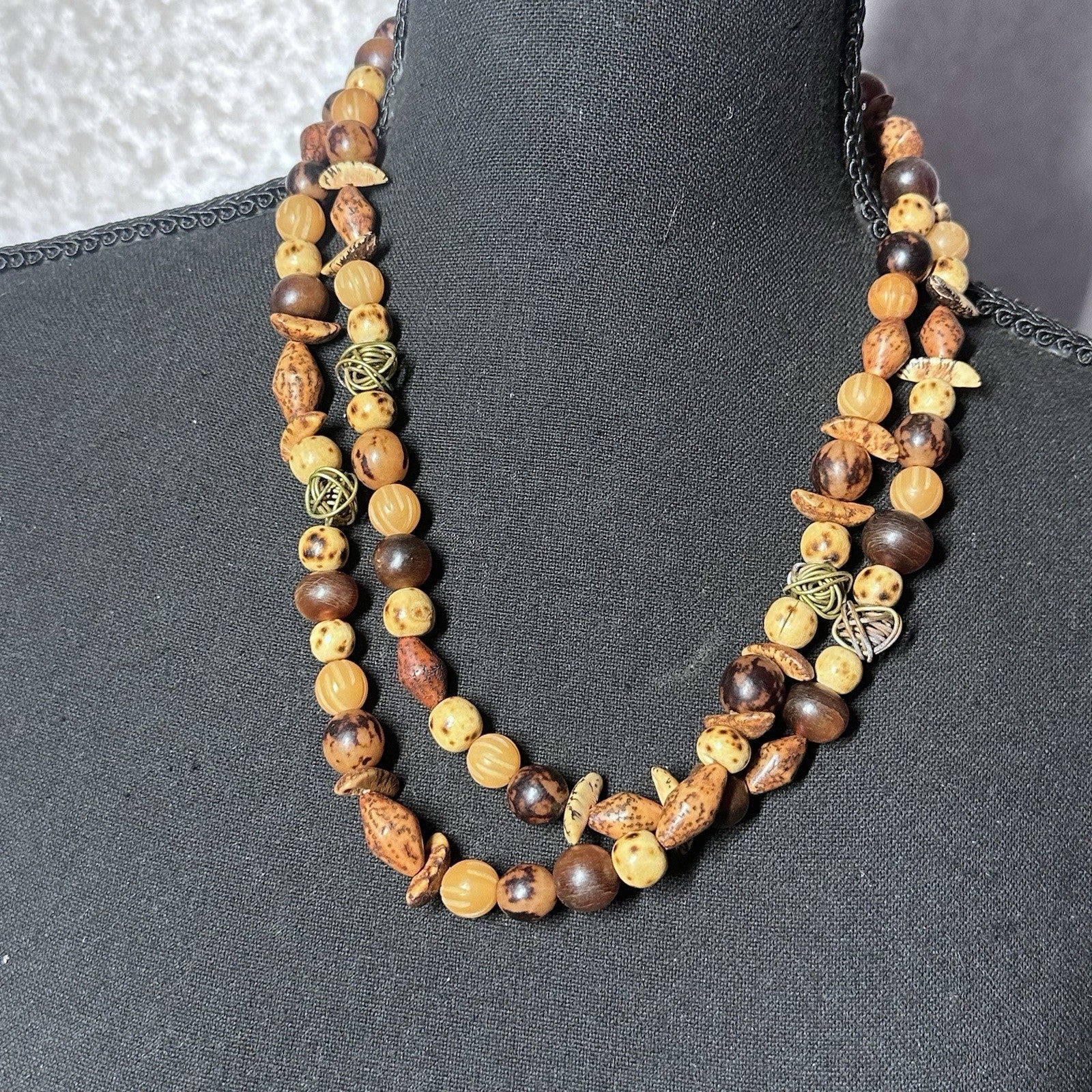 Vintage Dayne Duvall Wood & Mixed Stone Fashion Layering Long Necklace