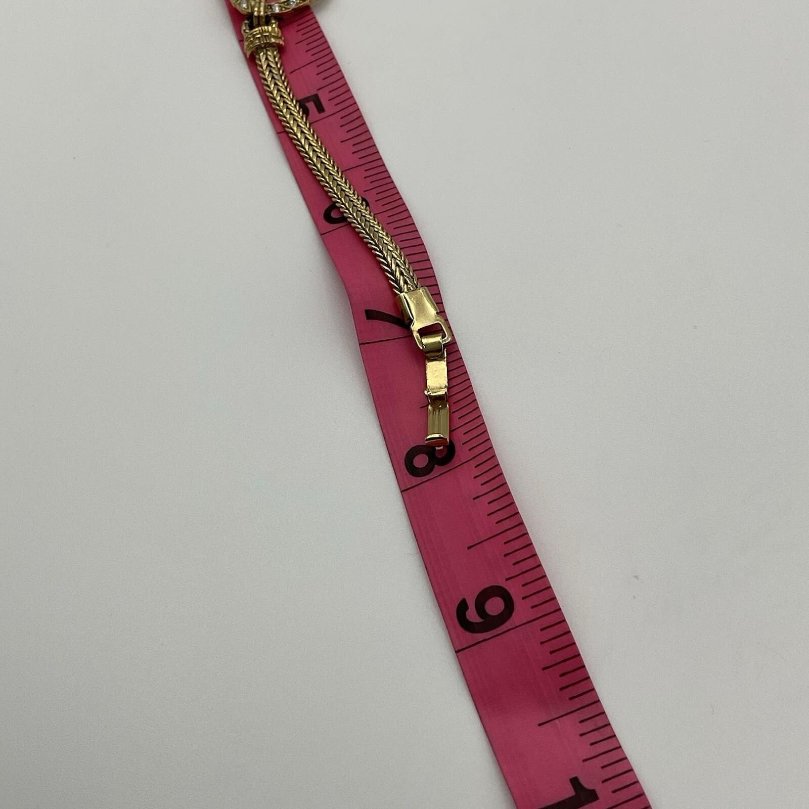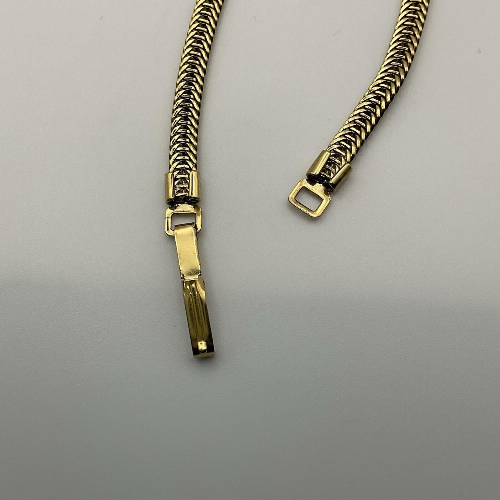 Vintage Gold Tone Herringbone Chain Crystal Heart Bracelet