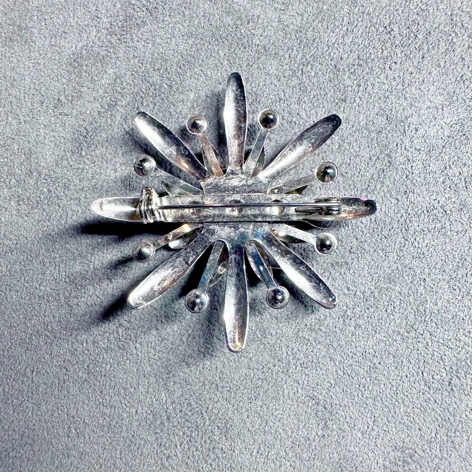 Vintage Jewelry Mod Hippie Boho Pink Flower With Rhinestone Brooch Pin