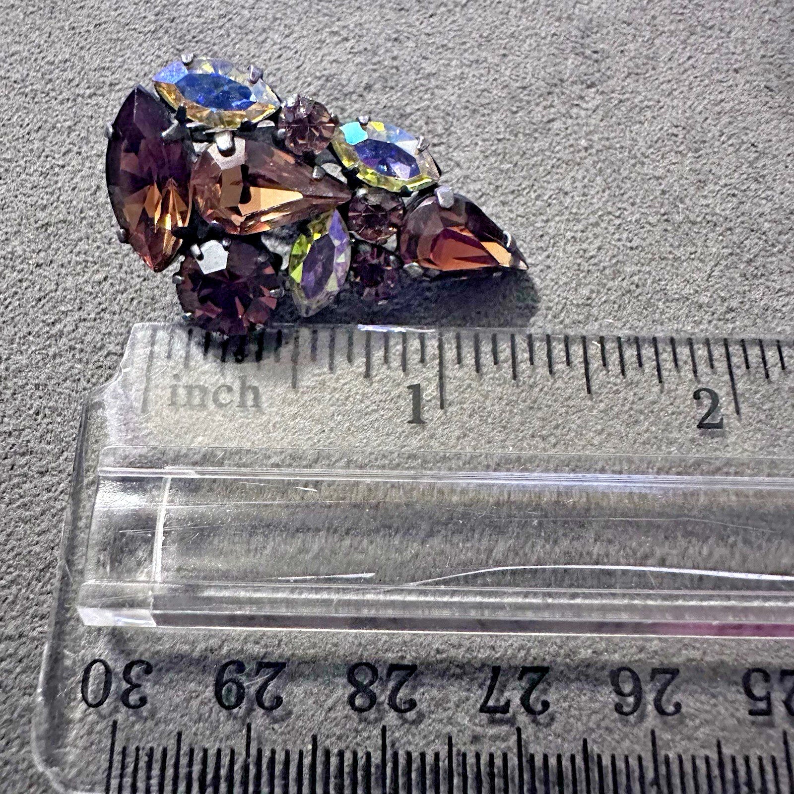 These Vintage Root Beer Topaz Cabochon and AB Rhinestone clip on earrings feature a cluster setting style with a clip closure for easy wear. Regency style All items sold as-is. Listing is for jewelry only — props and staging items not included.Items are in good vintage condition with some wear or marks. Please view all photos carefully and message us with any questions.We lightly surface clean items, but recommend a full clean/sanitization before use.Orders ship Monday, Wednesday & Friday. Weekend orders go out Monday. All sales are final. We're committed to 100% satisfaction — feel free to reach out anytime!