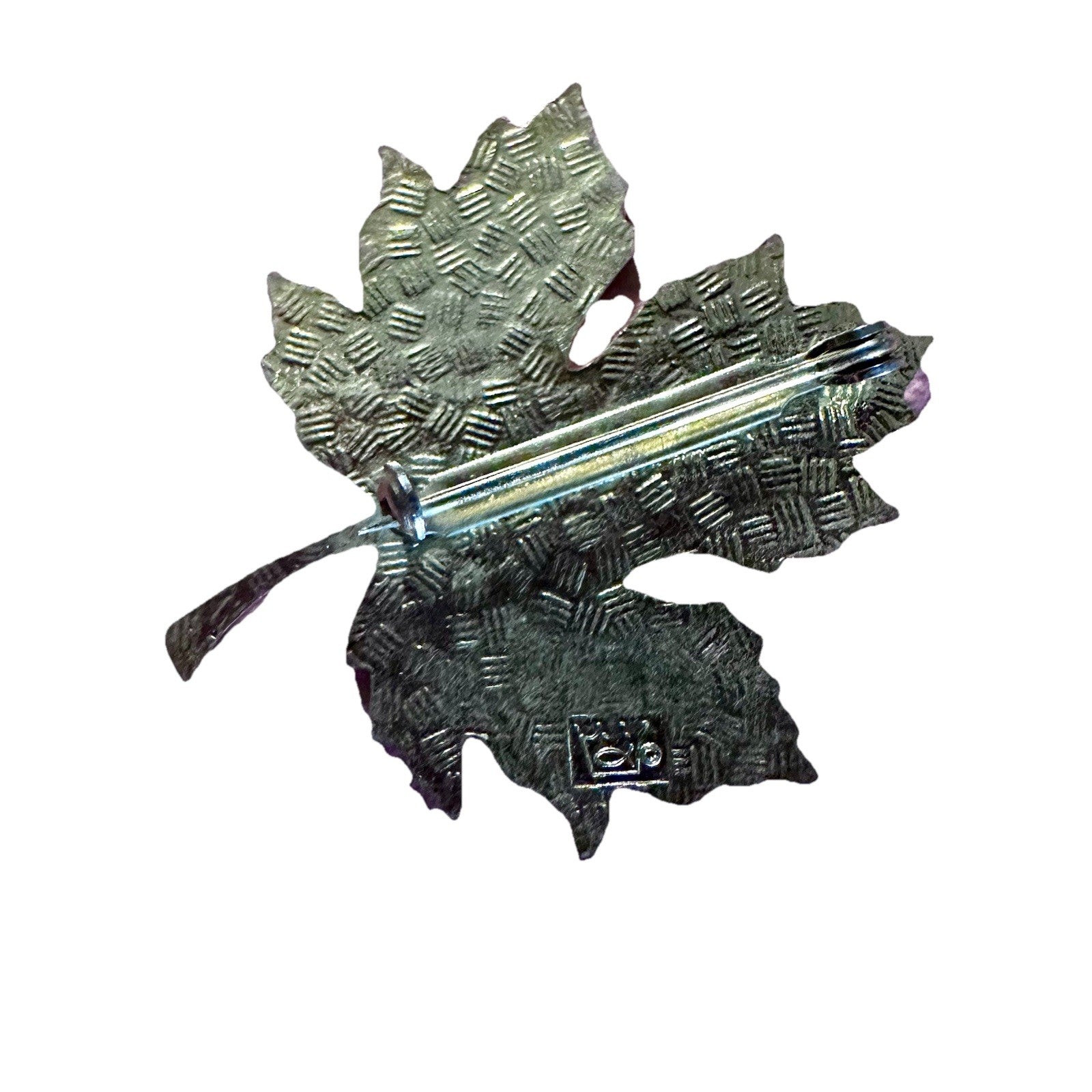 Vintage Stamped Fish and Crown Cloisonne Gold Tone Leaf Brooch/Pin